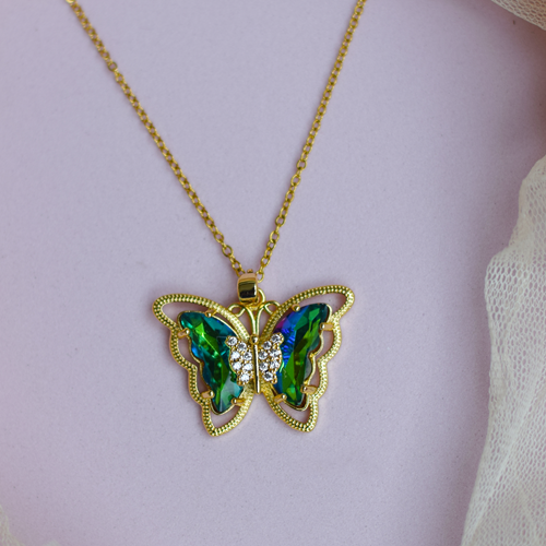 Elevate your style with our enchanting butterfly gemstone necklace. Crafted with precision, this dazzling piece features a vibrant butterfly adorned with sparkling gemstones. A perfect blend of nature’s beauty and luxurious elegance.